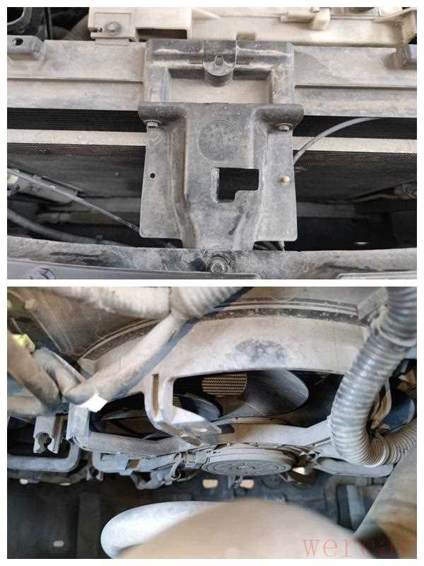 先看一下前面的水箱框架,没有发现拆卸变形的痕迹,下方的散热风扇同样是原装的,再结合前机盖的情况,足以说明车头前面并没有发生过大的碰撞!