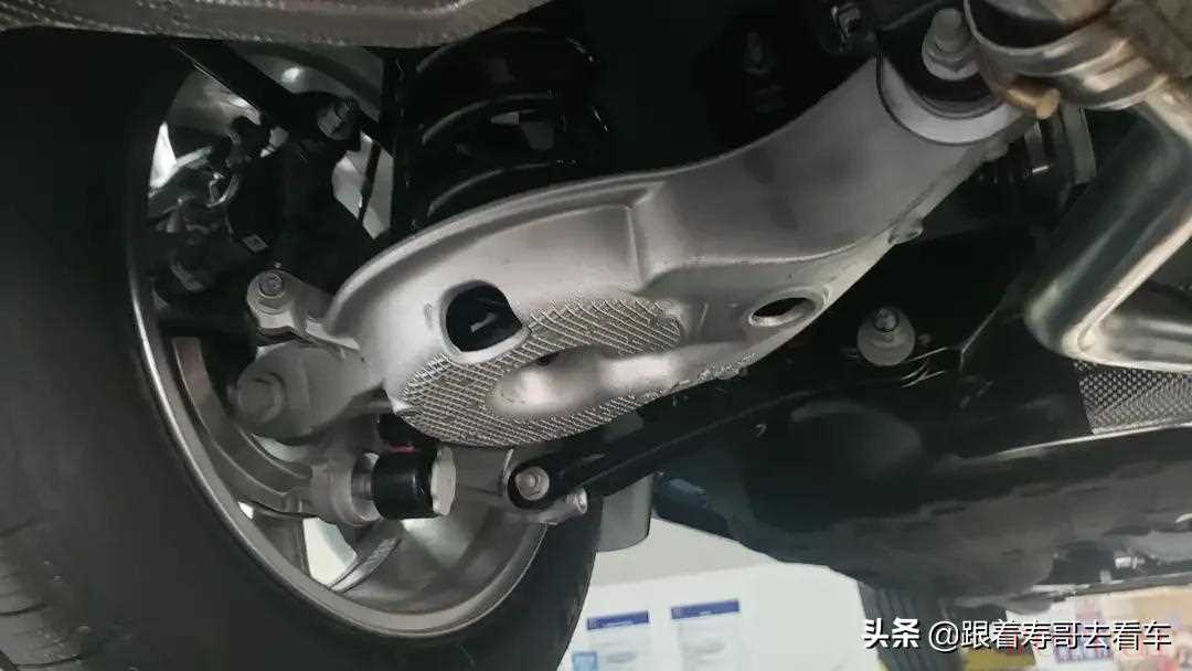 看完平台,我们回归用料。探险者的前悬架采用的是双球节弹簧减震支柱悬架,讲到这里的时候可能大家又要说为什么不用双叉臂,双叉臂肯定要比双球节好啊,这个确实也是,但这个价格区间的车子大部分都在用麦弗逊前悬架,双球节算是麦弗逊的升级版了,因为宝马3系、M3也在使用,双球节带来更大的摆动自由度,保证更好的转向精度,并且在多个角度可以承担更大的受力,转向时的稳定性更好;驾驶操控性提高20%,外倾角刚度提高14%,运动学衰退降低98%,这个是不是好东西大家觉得?加上探险者前悬挂并非是传统的三角臂,而是两根铝制锻造件组成的两根连杆,与转向节的连接件为球节,而非传统的衬套,这些液压衬套有效减小高频振动和改善NVH。后悬架采用了整合式多连杆悬挂,全框式后车架采用液压衬套,过滤纵向震动,对于隔音方面也是有很大的提升的,铝合金的前后下摆臂,都是白花花的一块,相当的厚,轻量化设置,强度更高,行业内不是有句话说簧下一公斤,簧上十公斤,悬架越轻操控越越好吗?这样的设计让开车的人开起来得心应手,操控感更好,让坐车的人过一些颠簸路面如履平地,大大提升了驾乘感受。我们看看同级别的竞品那款车的用料有这么好,说句实话,大部分都很少用铝合金,因为这些东西确实要贵。