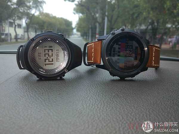 外形上大家可以明显看到FENIX3比X-PRO要大一圈,更像一块正常意义上的手表,而且屏幕分辨率那是完全碾压(FENIX3为218*218半透反射式彩色屏幕,X-PRO为110*110黑白屏幕).但是佩戴上,X-PRO比FENIX要好很多(“曲线”救国),重量(70G)也要比FENIX3(85G)轻一些,跑步时候我更愿意带X-PRO,反正我是有点HOLD不住FENIX3。
