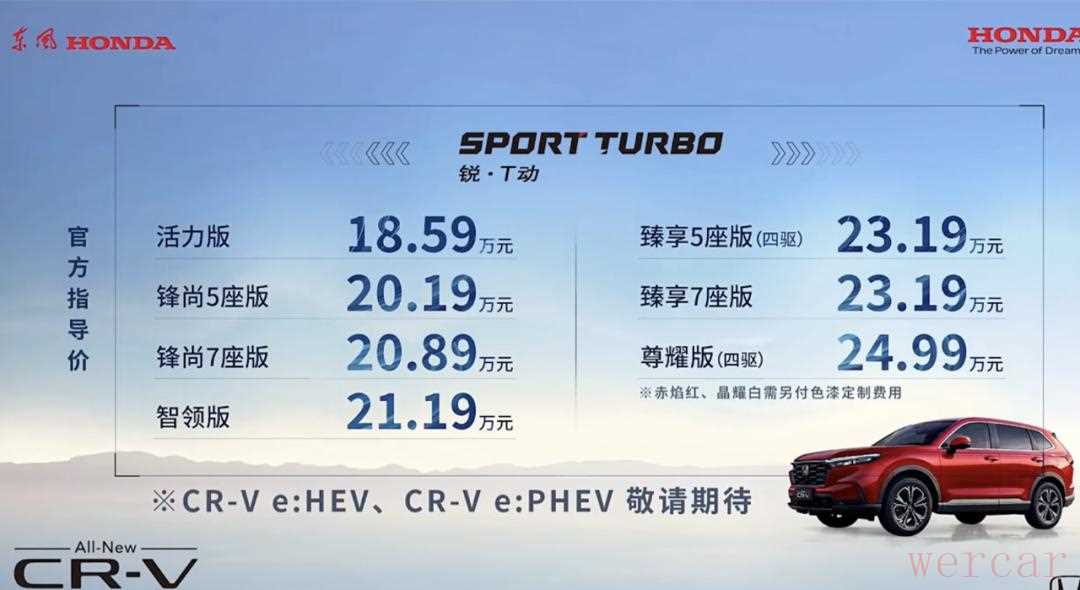 除了CR-V,本田旗下可能还有其他以“CR”命名的车型,例如: