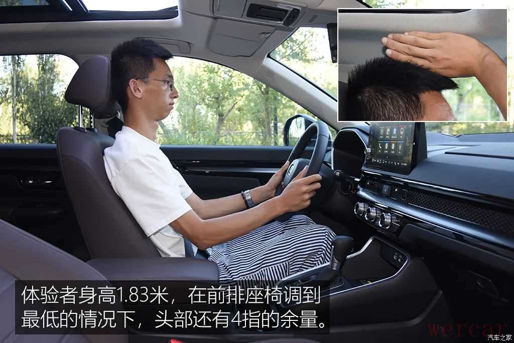 左右滑动查看空间体验空间上,体验者身高183cm,前排座椅调至最低,头部空间4指;第二排乘坐空间,腿部空间最大为两拳,最小为两指;第三排空间,头部空间已经没有富裕,腿部空间在第二排坐人时最大3指,不适合长时间乘坐。