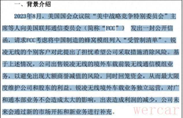 剥离优质资产对公司造成的负面影响持续至今。2024年7月,因诸多复杂因素影响,为避免出现大额商誉减值的风险,广和通决定将子公司锐凌无线的境外车载前装无线通信模组业务,以1.5亿美元出售给EUROPASOLAR S.àr.l。