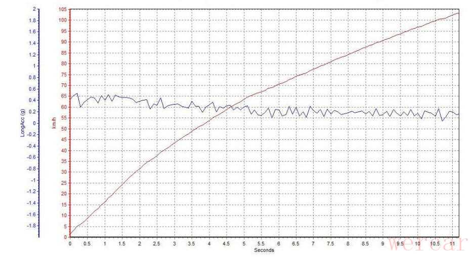 由于哈弗F的这套动力系统总成还是比较注重日常行驶时的燃油经济性,所以整体在加速表现上还是挺温柔的,初段加速油门踏板响应积极,并没有非常突兀的不适爆发感,10.57秒的加速成绩也还算合格。