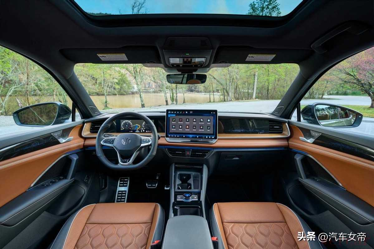 内饰方面,途观L也全面升级,采用了数字化座舱设计,配备了全液晶仪表盘和可旋转的大尺寸中控触摸屏,并搭载了大众最新的MIB X多媒体系统,支持CarPlay、CarLife等手机互联功能。内饰用料和做工相比前代也有明显提升。
