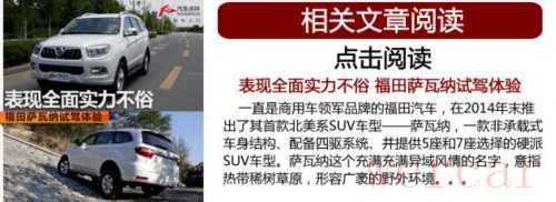 总结:或许从知名度的角度来讲,福田萨瓦纳并不被人们所熟知。而当今天编辑对它有过一次短暂的接触之后,却对它好感倍增,这主要是它出色的行驶素质所决定的。对于广大消费者来说,如果你需要的是一款动力强劲,越野能力出色同时又具有良好产品质量的硬派SUV,那么福田萨瓦纳绝对是一个值得考虑的车型,只是现在官方还没有给出正式的销售价格,想要自动挡车型还需等些日子。不过即将到来的北京车展上,这款车将会正式与消费者见面,您可以到现场一睹真容。