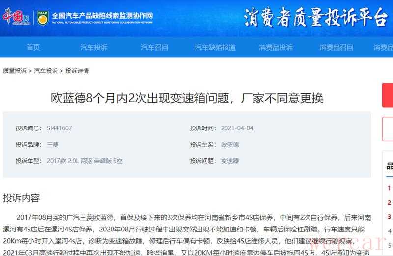 然而,记者通过查询各大投诉平台后发现,广汽三菱欧蓝德变速器的顿挫、拖挡,甚至是无法加速的问题并不鲜见。中国网也将对此继续保持关注。