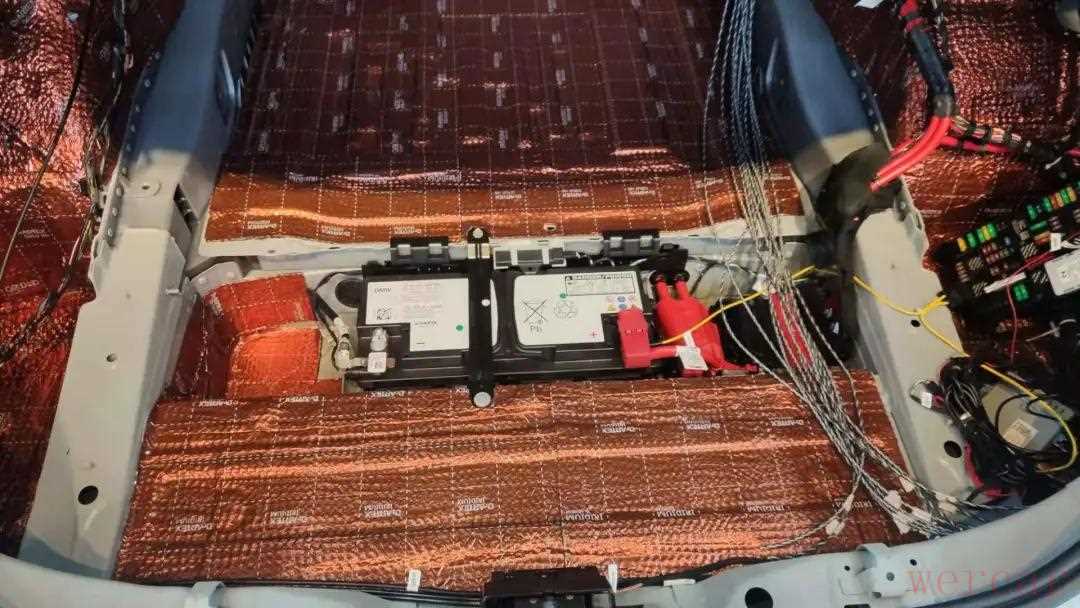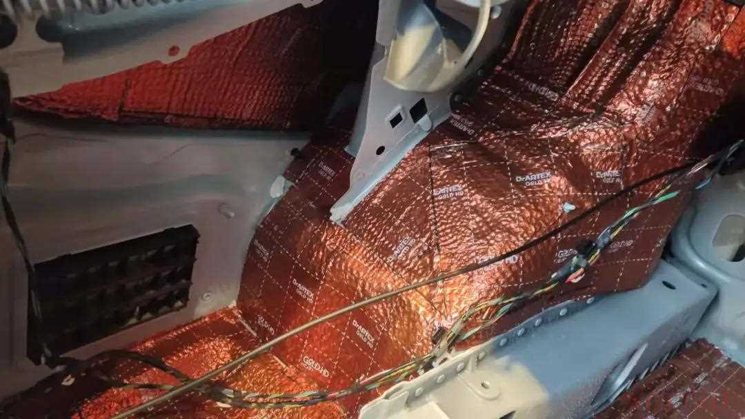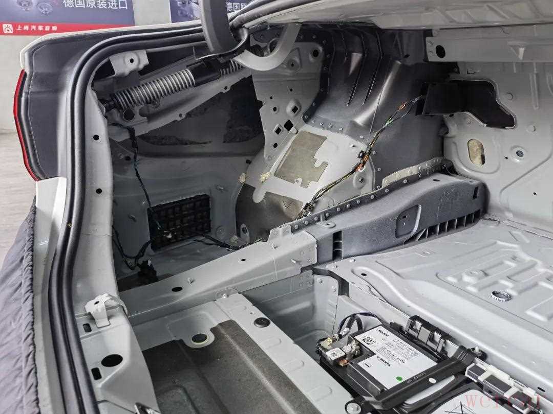 拆卸尾箱附件,钣金直接暴露出来,原车对尾箱机会没有隔音处理;尾箱低频共鸣噪音与后轮胎噪从这里传递到驾乘仓,因此尾箱隔音也需要重点照顾。