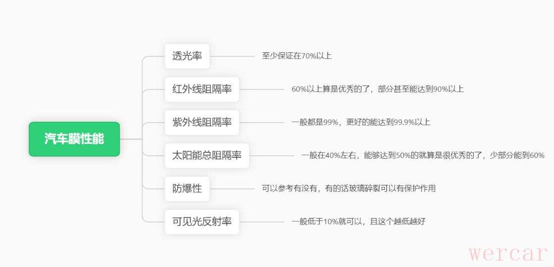 这个话题,总结就是见仁见智。其实就跟手机要不要贴防偷窥膜是一样的。贴了,最不好的就是视线没有那么高清但是不贴担心太阳晒和隐私问题。这里就不做过多的讨论了,如果是想要汽车贴膜的,这些各种各样的膜到底应该怎么选?重点看参数一般来说,看汽车膜好不好,可以通过以下6个参数去考虑