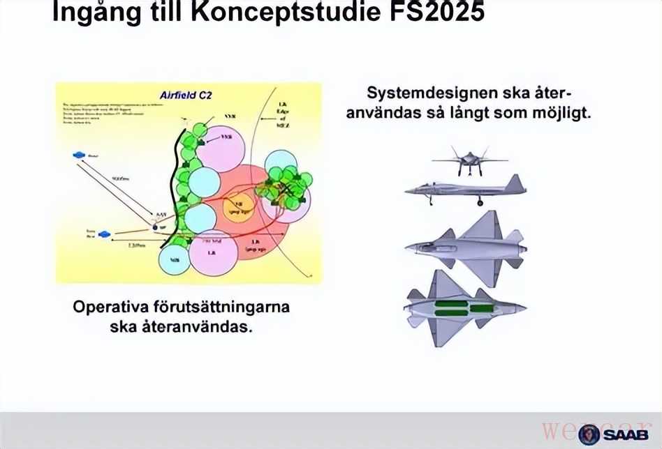 萨博将和FMV、瑞典军方、瑞典国防研究局(FOI)和GKN Aerospace通力合作以研发瑞典隐身战斗机,位于该计划框架下的 Vägval Stridsflyg(战斗航空途径)计划,将探索并塑造瑞典在2040年后的空中力量技术和作战概念。