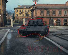 ▲H3炮塔正面防护不佳H3拥有1700点的生命值,这在IX级重型坦克里并不算多。坦克的炮塔仍然采用了经典M系坦克的设计,炮塔顶部有个体积较大的车长指挥塔弱点,炮塔正面等效厚度在230毫米左右,同级坦克用标准弹药可以轻易击穿。因此H3并不擅长与敌人卖头战斗,它还是要依靠队友和掩体与敌人交战。