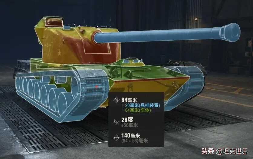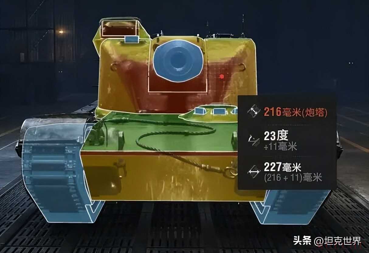 ▲H3的车体防御较差H3的车体防护主要依靠倾斜角度,坦克的车体首上有着较大的角度,对许多炮弹都有较强的跳弹能力。但坦克的车体首下防御力就要差不少,在实战中是明显弱点。并且需要注意坦克的诱导轮部分,不仅位置偏高,而且厚度较低,很容易被敌人击穿并打断履带。因此同样建议车长们尽量利用掩体/地形遮挡,并且保持运动。机动与其他属性