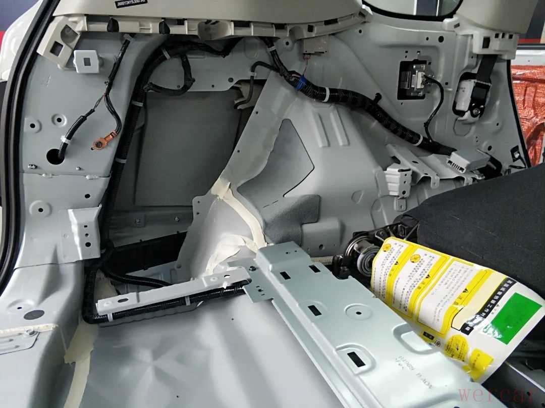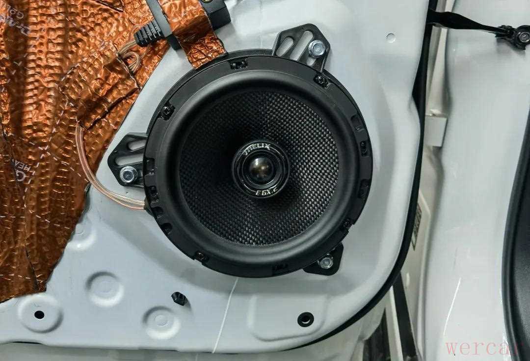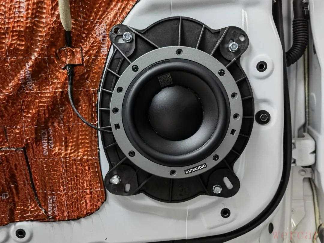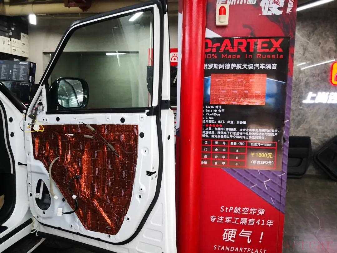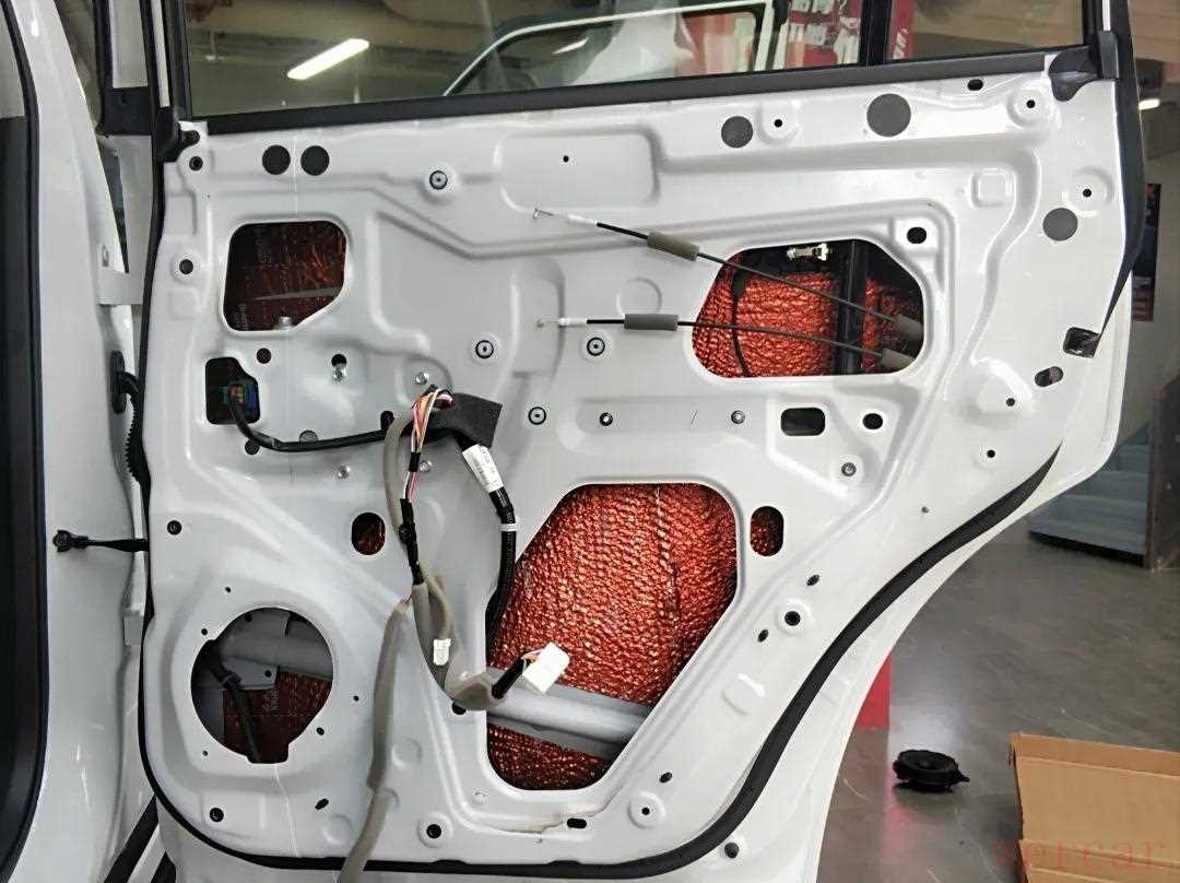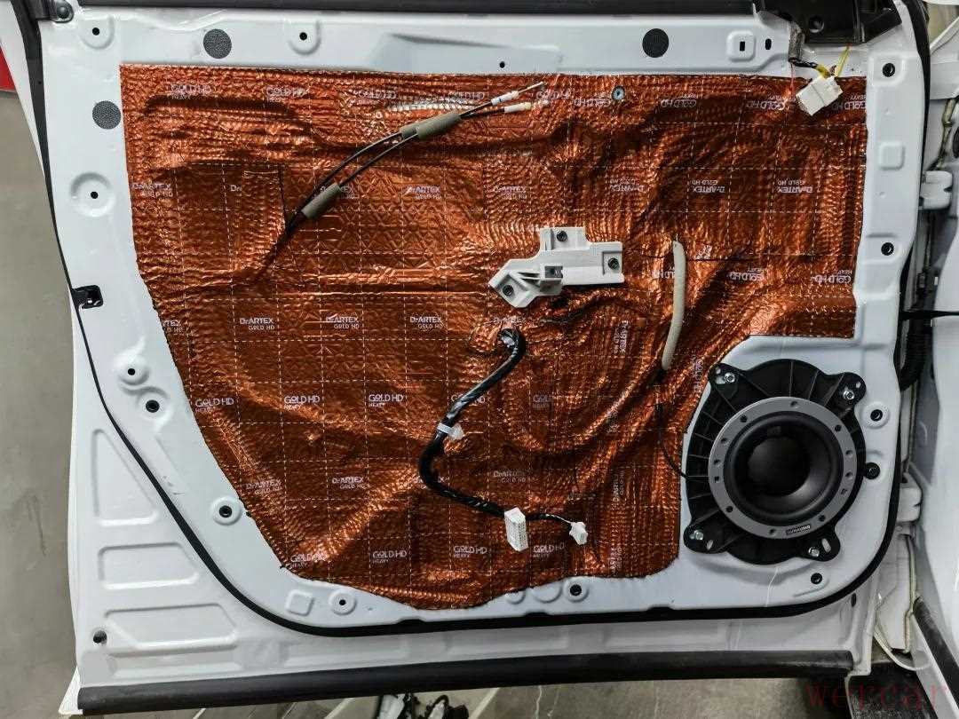 安装声场喇叭前,首先使用俄罗斯阿德萨环保隔音材料对四门进行隔音降噪处理,用隔音材料对车门进行内外双层隔音,增加门板的厚实度,降低外来噪音的传入,提升车内的静谧性,营造一个良好的听音环境。