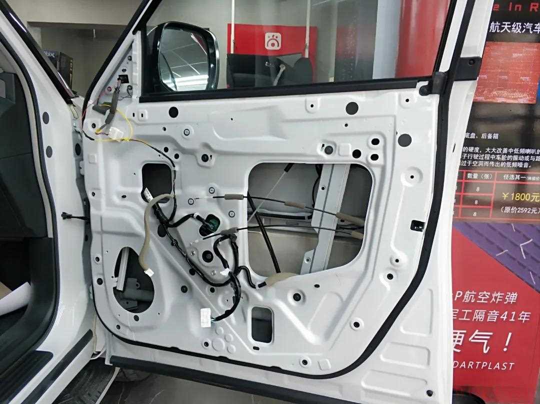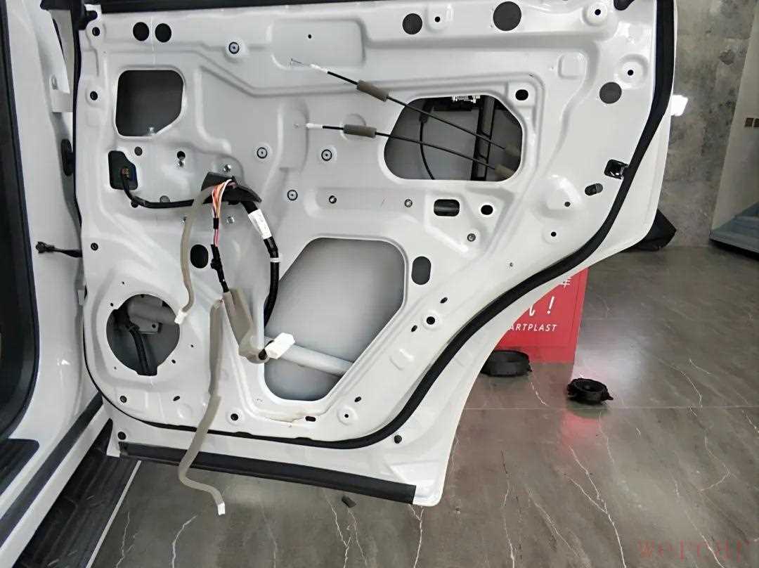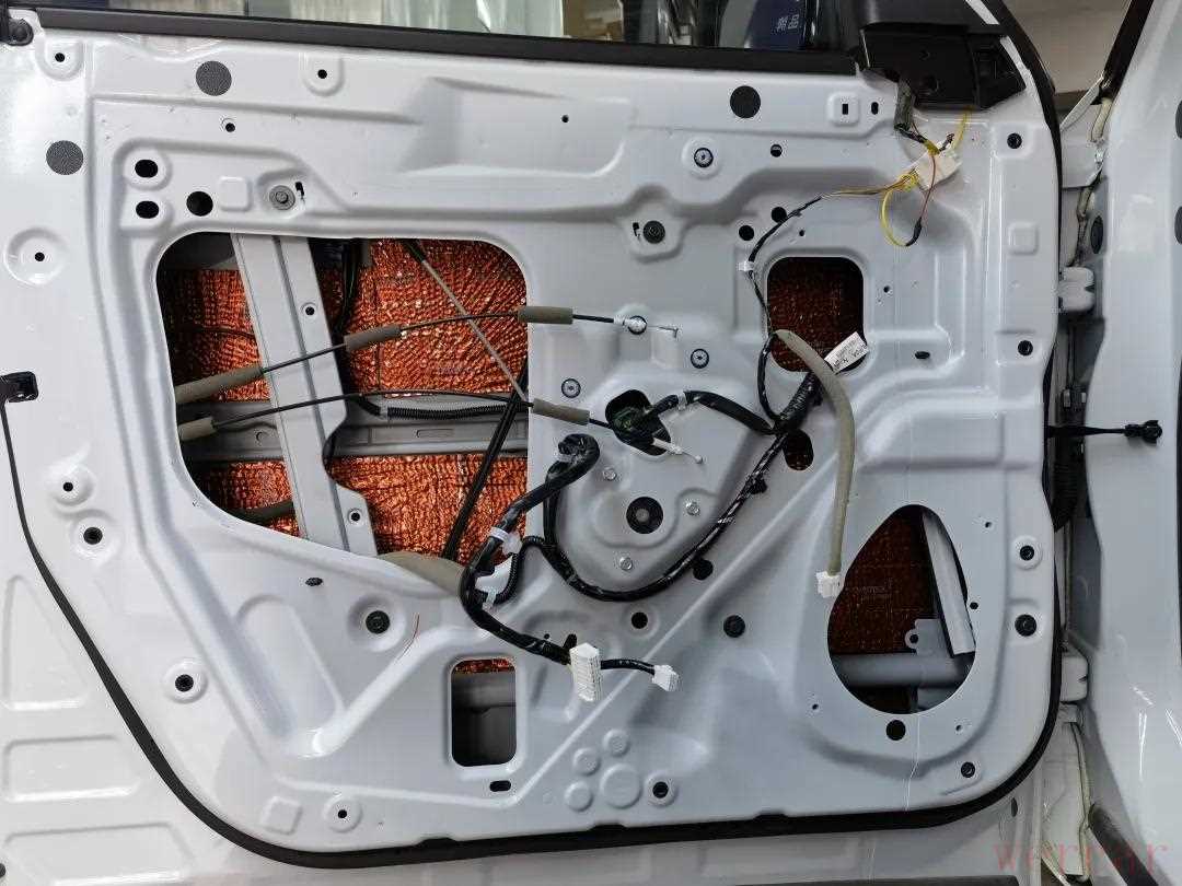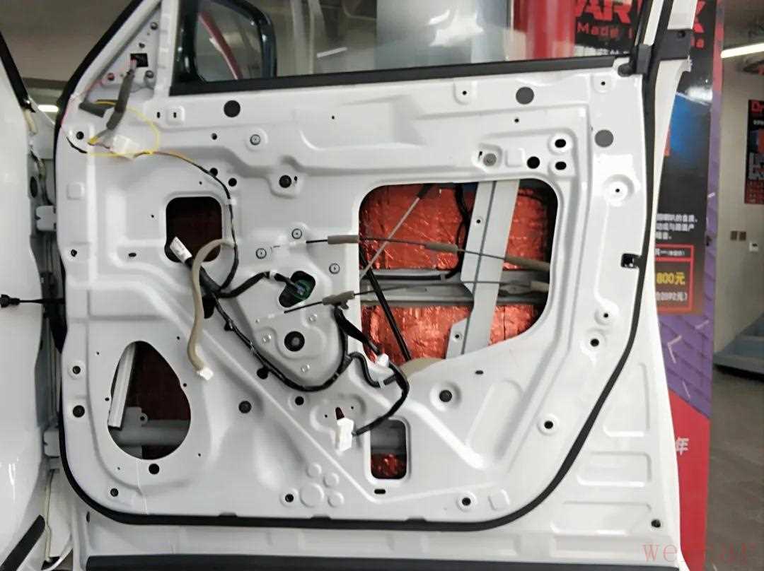 撕掉原车防水纸隔音,将门板清洗干净