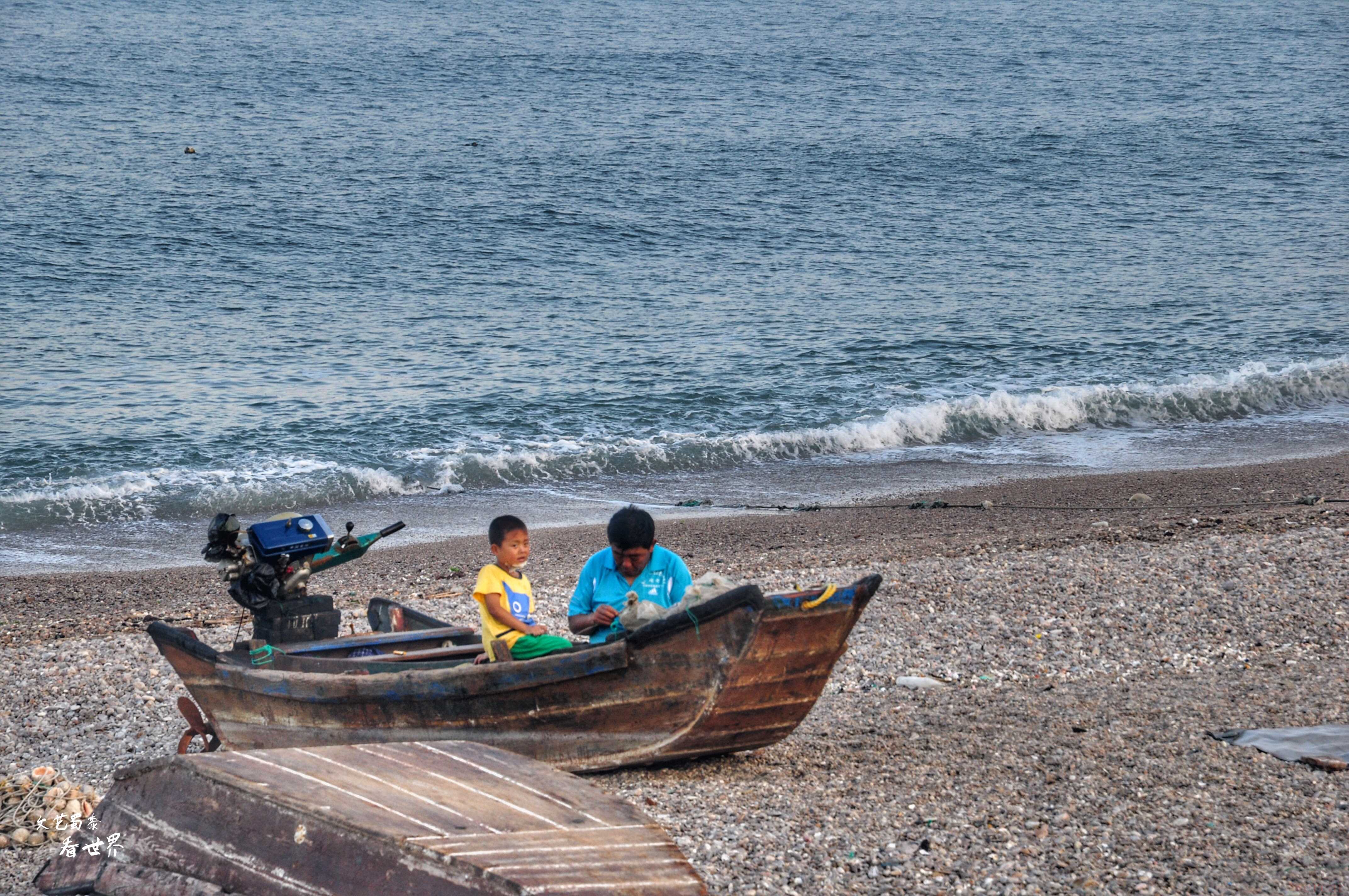 郭沫若先生曾经写过“汪洋万顷青玉靛,小屿珊瑚列画屏”的诗句,竟然就是在赞美海王九岛。小岛的的确确很美,处处彰显着和谐美好的景象,傍晚时分我们再次优哉游哉地四处闲逛起来,每每看到渔民在小船上忙活,我们都会好奇地去看一看。
