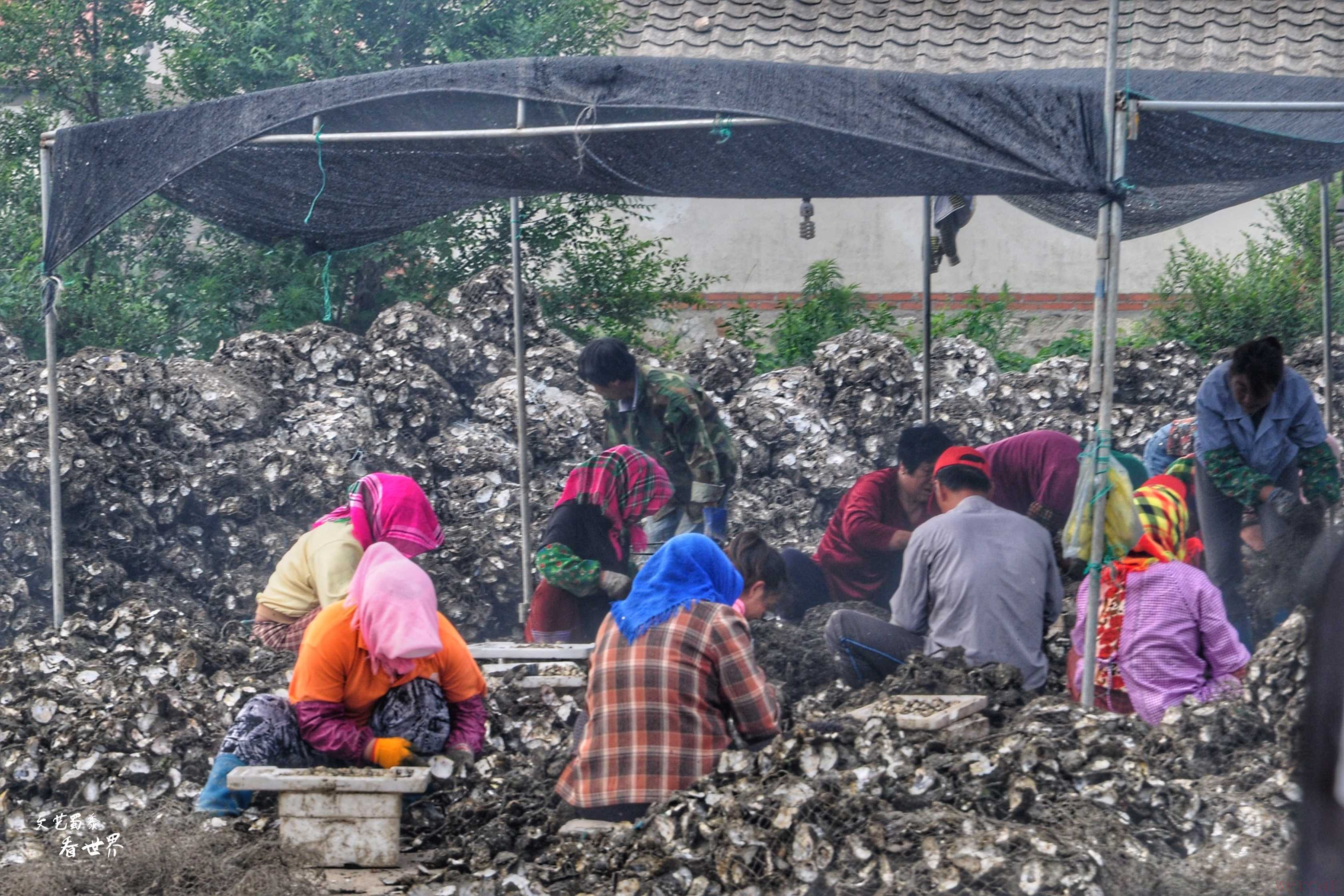 一大早我们就见到了渔村里一派繁忙的景象,牡蛎都堆成山了,渔民们正在忙着处理。海王九岛盛产刺参、牡蛎、对虾、鲅鱼、贻贝、扇贝、海螺、鲽鱼、银针鱼、海燕鱼、牙片鱼等,渔猎资源非常丰富。在岛上,我们总能轻而易举地大饱口福,享尽海鲜美味。