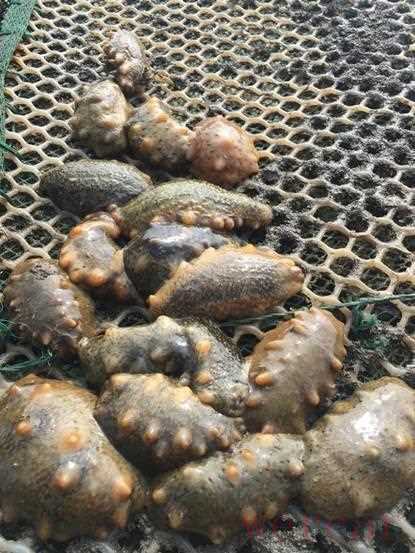 于大哥在海底放的1000多个网箱,每个网箱能养200斤海参,海参一年给他带来的收入就超过千万。
