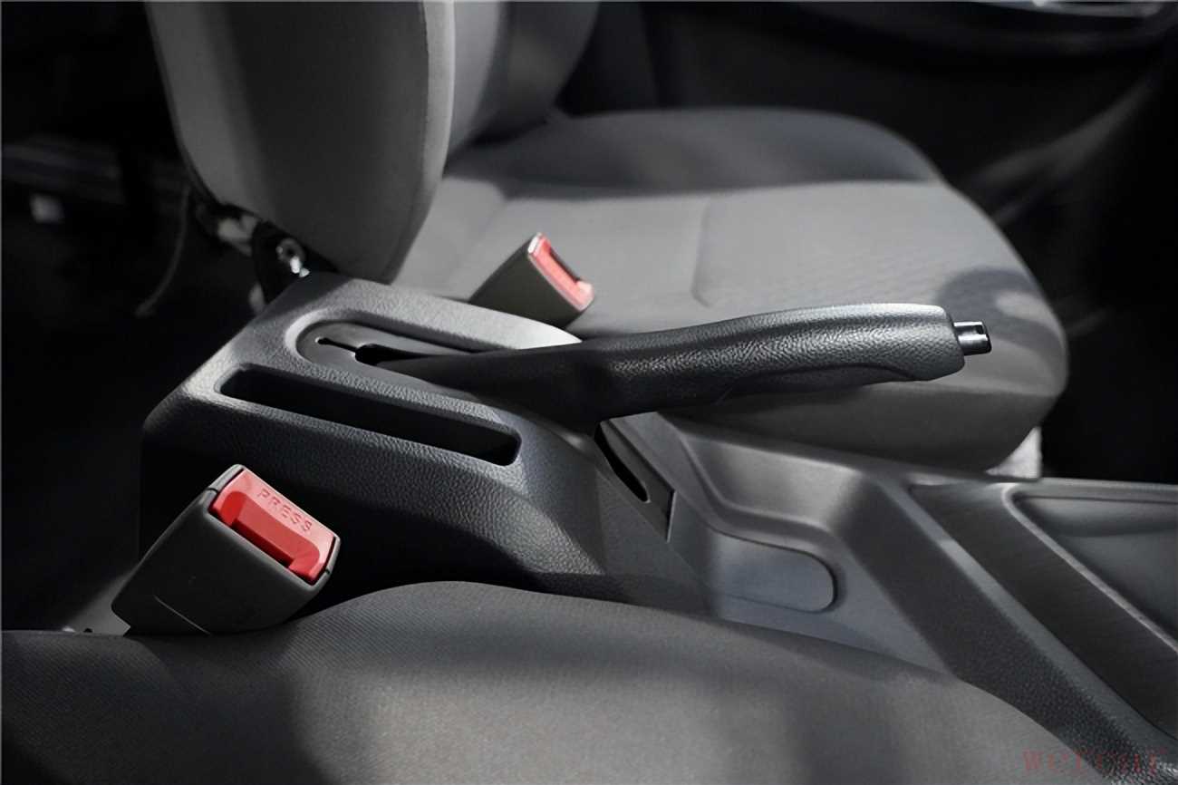 机械手刹,旁边还有个装手机的储物格,细节到位。
