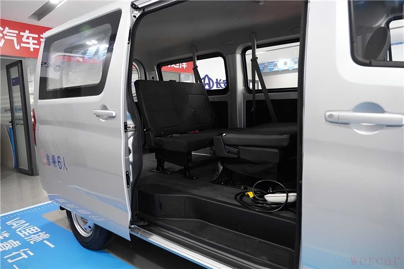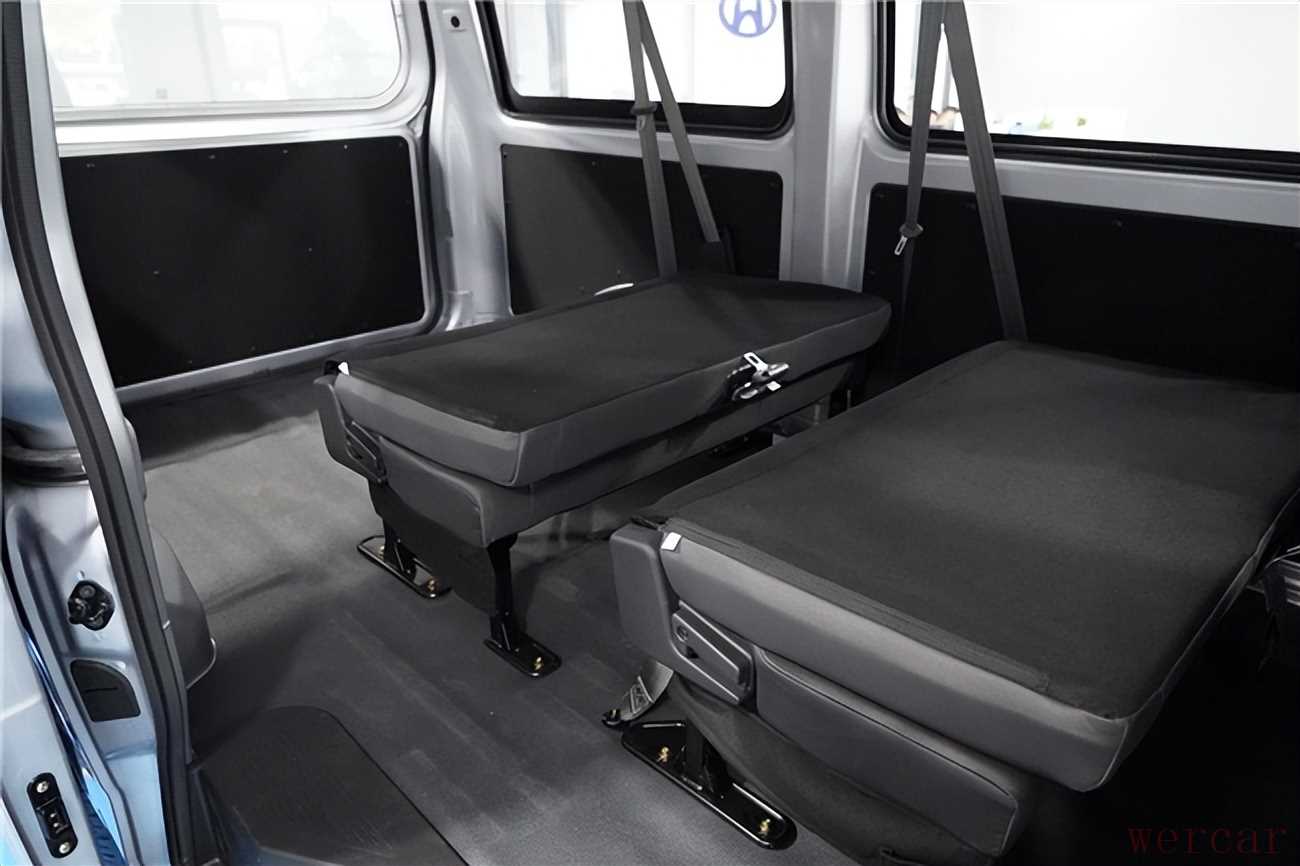 这个客运版座位空间还挺大的,上车试了一下,我1米75的个子,坐在座位上跷二郎腿、伸懒腰都没问题,空间富裕得很。后面两排座椅靠背还可以放倒,就算买这种六座版,估计也能装不少货。