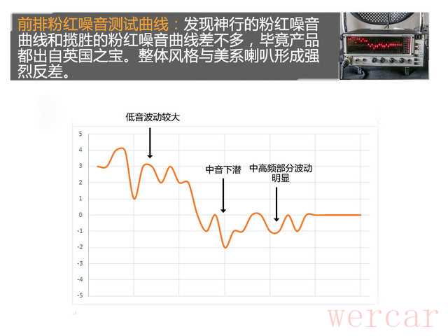 在测试之前我们有必要先了解下粉红噪音。粉红噪音是自然界最常见的噪音,也是最常用于声学测试的音源。通俗地说,它是一种包含人耳能听到的所有频段(20Hz-20kHz)组成的一种声音,由于粉红噪音在每一个频率输出皆是等电平,所以利用粉红噪音测试可以更直观看出音响在各个频率的表现。美国AudioControl生产的SA-3055实时音频分析仪就是一部专门帮助人分析各频段声音响度差别的仪器,因为它的专业性而经常出现在大型的音响比赛中。