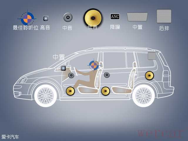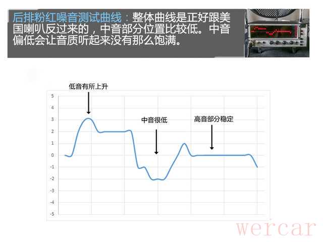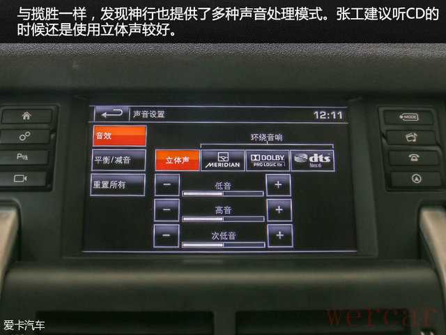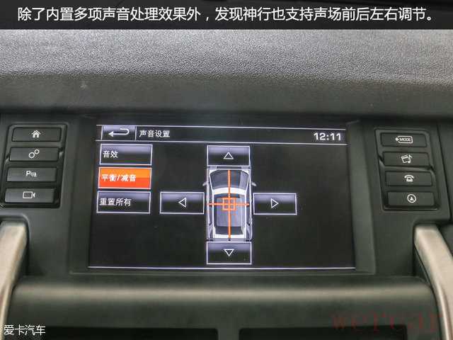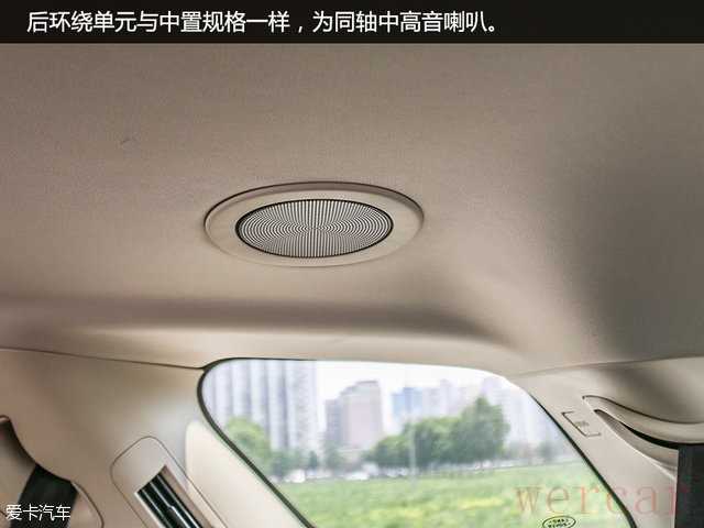 后排的低音做的不错,低频比较集中,很有“气势”,跟揽胜是一样的,但是扬声器的摆位稍微逊色一些。坐在后排会有一种被包围的感觉,也就是说前面的声音能过来,同时后面的声音也在积极回应着你,即使坐在后面也能有一个比错的聆听环境,有些车的后排比前排就会差很多。