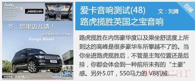 为我们带来本次测试的依旧是我们的老朋友,新城子昂张静波工程师。他将利用专业的仪器以及专家级的聆听感受对路虎揽胜车上的这套英国之宝音响做出评价。