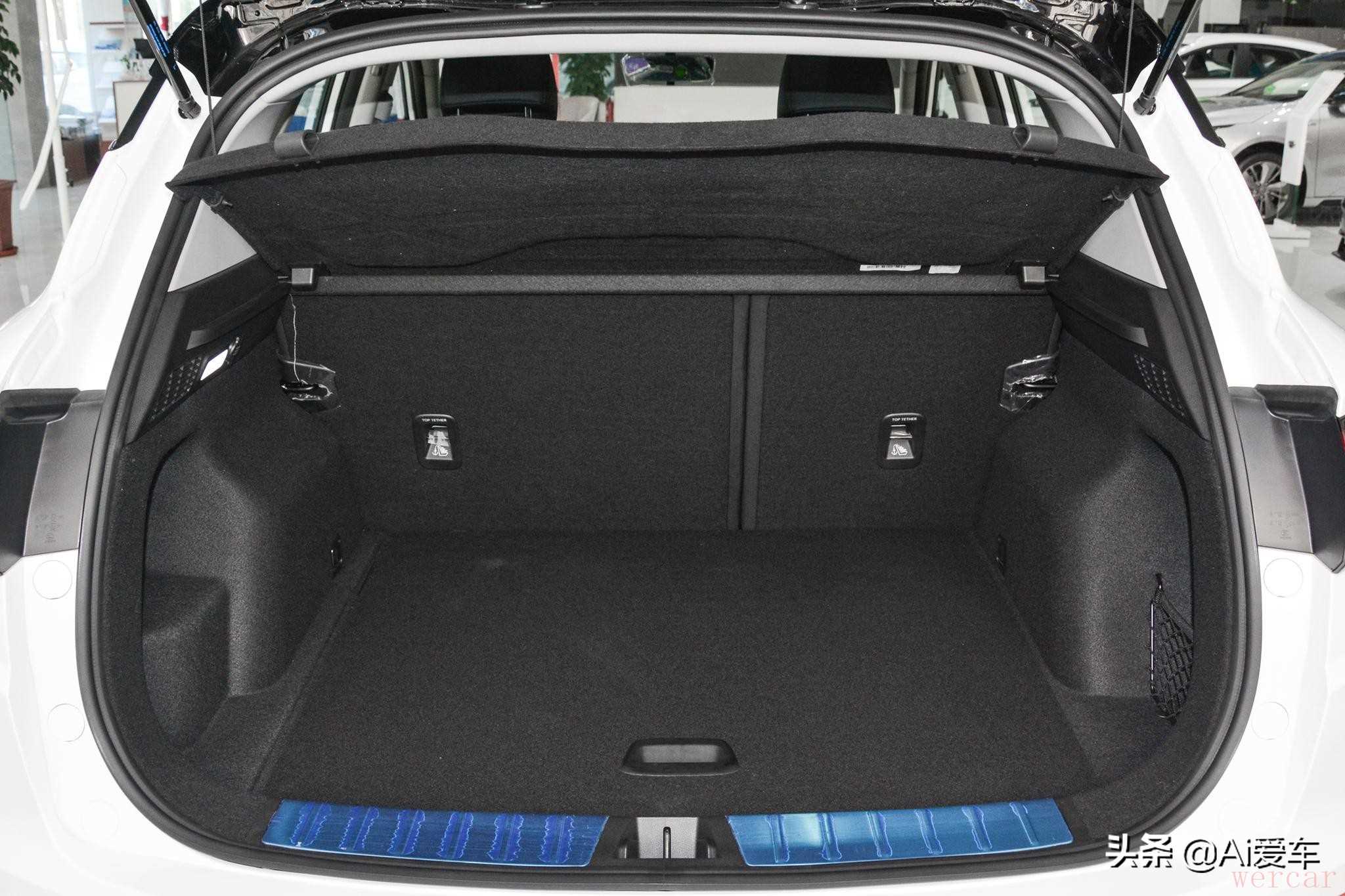 侧面来看,车身就是一种俯冲的姿态,再配合上腰线,非常运动。悬浮式车顶上有实用的旅行架。前后的215/55 R18旋转的铝合金轮毂,配上双轮眉,更显大气潮流。一前一后的补能接口,一个充电一个加油。