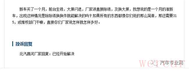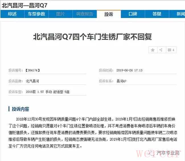 汽车专业网编辑通过查询第三方汽车投诉网站发现,有关北汽昌河Q7车身生锈问题的投诉不在少数。