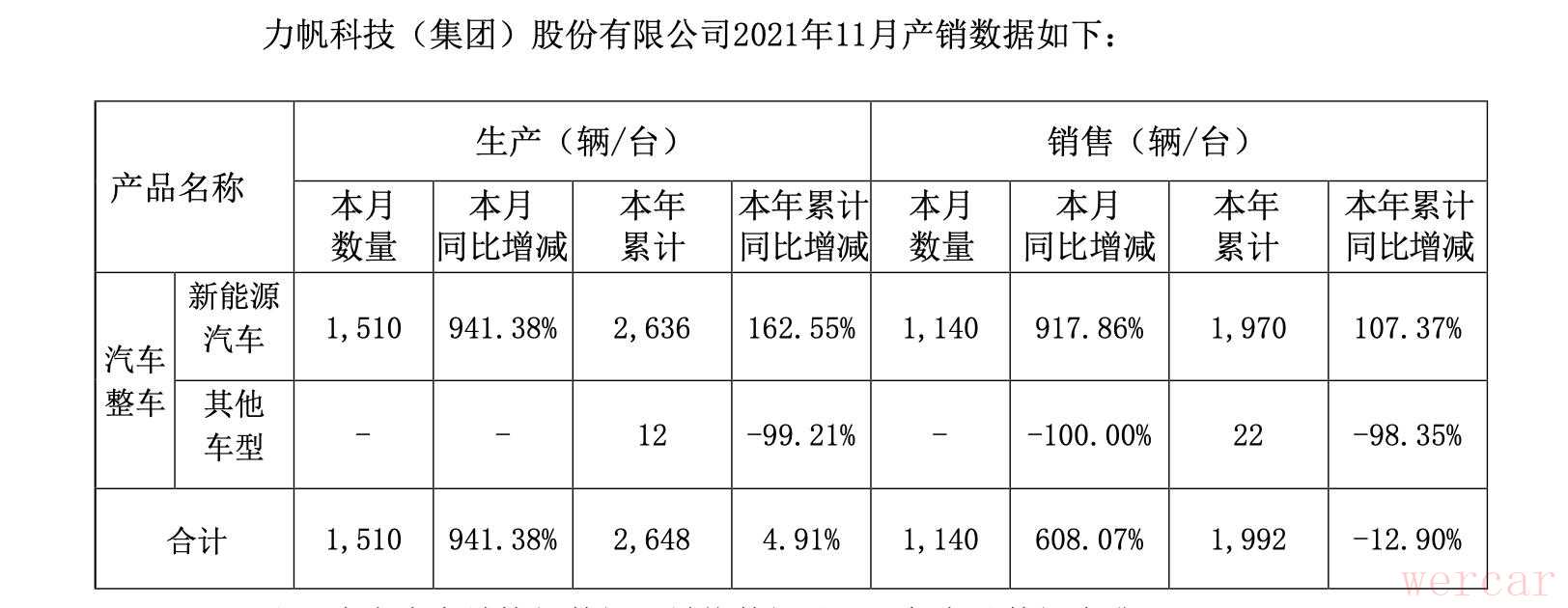按照规划,力帆科技方还将在今年推出两款换电车型——60S与80X。其中,60S将是面对出租车、网约车市场的换电型轿车,80X则是主要针对公务用车客户的大型换电SUV车型。从几款车型的发布计划可见,力帆科技首先量产的将是主要针对B端市场的换电车型,且可由吉利旗下的出行企业进行消化。在此实际已经可以预测到,力帆的“复活”将是意料之内的一笔。力帆科技披露的最新的产销快报显示,今年11月,力帆科技共生产新能源汽车1510辆,同比增长941.38%;共销售新能源汽车1140辆,同比增长917.86%。1-11月,力帆科技累计生产新能源汽车2636辆,同比增长162.55%;销售新能源汽车1970辆,同比增长107.37%。
