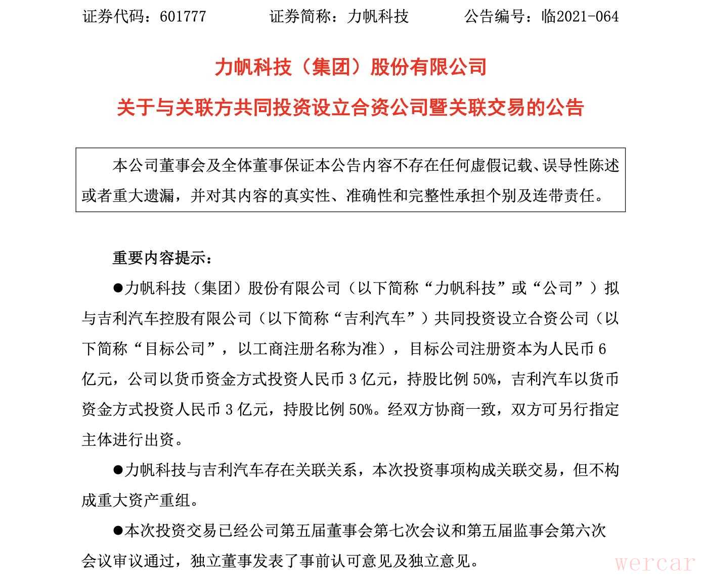 12月13日,吉利汽车控股有限公司与力帆科技(集团)有限公司双双发布公告称,双方拟共同投资设立合资公司。新合资公司注册资本将为人民币6亿元,由吉利汽车与力帆科技各出资人民币3亿元,持股50%。 新合资公司的拟定,对于力帆来说利好的无疑是产业转型的升级与加速,而对吉利而言,或许仍然是为了更长远的运筹帷幄的操作。重整后,力帆走出“重症病房”一年时间过去,力帆已经不再是那个深陷债务危机的力帆。去年11月,吉利借助重庆满江红企业管理有限公司参与力帆重整,并在之后入主力帆。在重整过程中,力帆在今年上半年迅速“摘星脱帽”,并正式更名为“力帆科技”。此后,力帆科技才真正开始恢复汽车业务。今年5月18日,力帆科技首款换电车型80V在重庆蔡家生产基地量产下线。下线仪式现场,力帆科技与曹操出行、易易互联科技等达成战略合作,并确认了换电车型的采购意向。