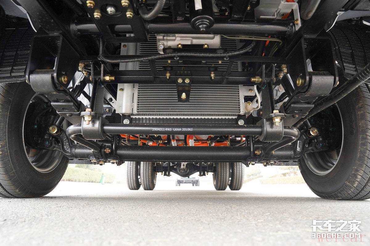 我们再看底盘配置,飞碟缔途EF3的纵梁使用610L高强钢,无论是承载能力、抗扭转能力还是抗疲劳强度都表现优秀。同时该车还匹配有高强度的锻造片簧,后桥为5+2片钢板弹簧悬架,承载货物的能力秉承了缔途一贯以来的坚实可靠。