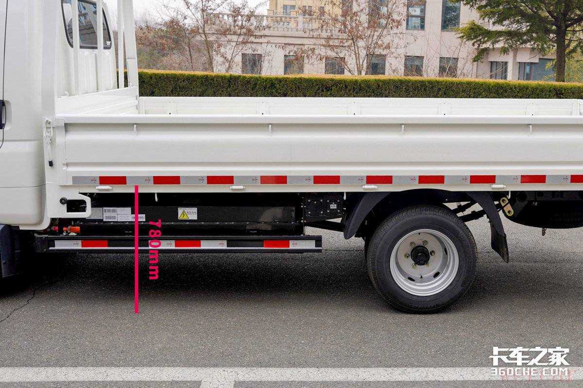 不过城配运输不同于干线物流运输,在很多情况下还是需要人工去装卸的,也正因此,货箱的离地高度就显得尤为重要了。经过我们的实际测量,飞碟缔途EF3的前部货箱离地高度在78厘米左右,后方在80厘米出头,这样的离地高度对于装卸人员非常友好,正应了“轿车是一低遮百丑,货车是一低不伤腰”这句话。