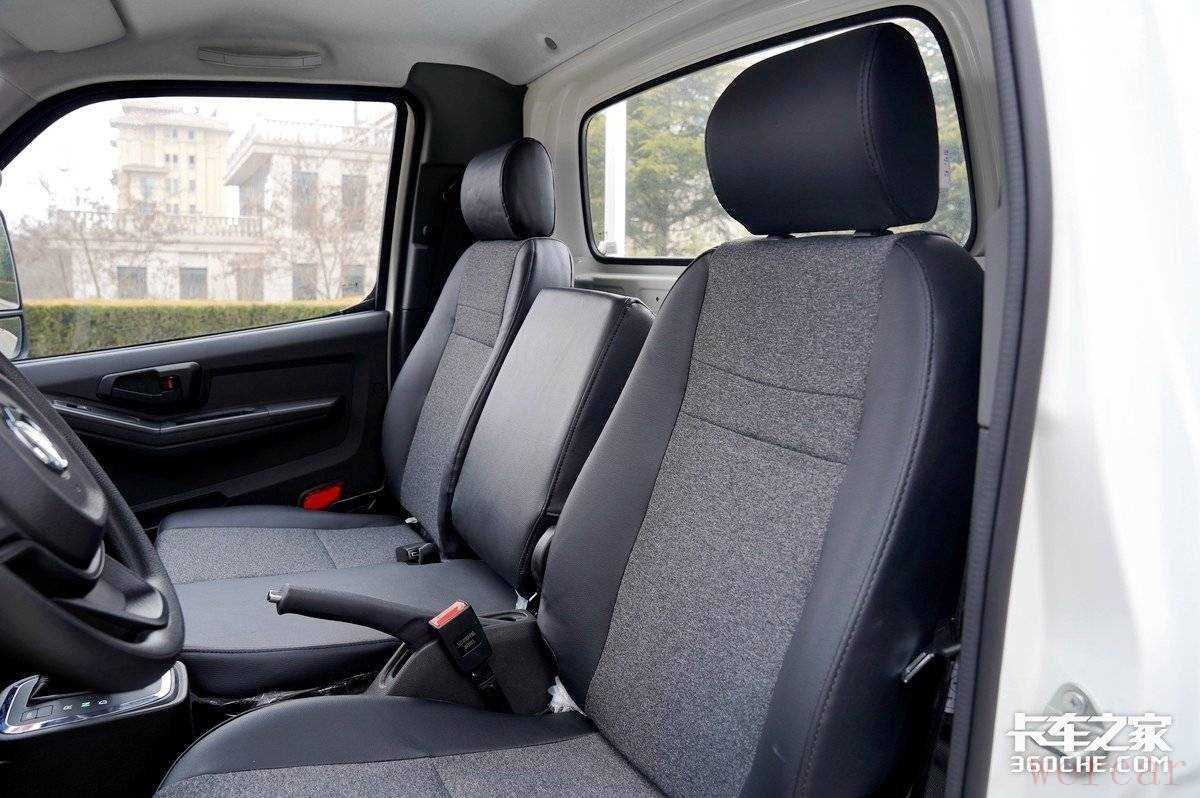 车内座椅也非常值得一说,座椅中间及两侧采用了不同的椅面材质,触感较为亲肤。得益于驾驶室后部后凸的设计,使得座椅具有较大的俯仰角度,坐起来并不会有部分小卡只能“正襟危坐”的感觉,这一点很赞。