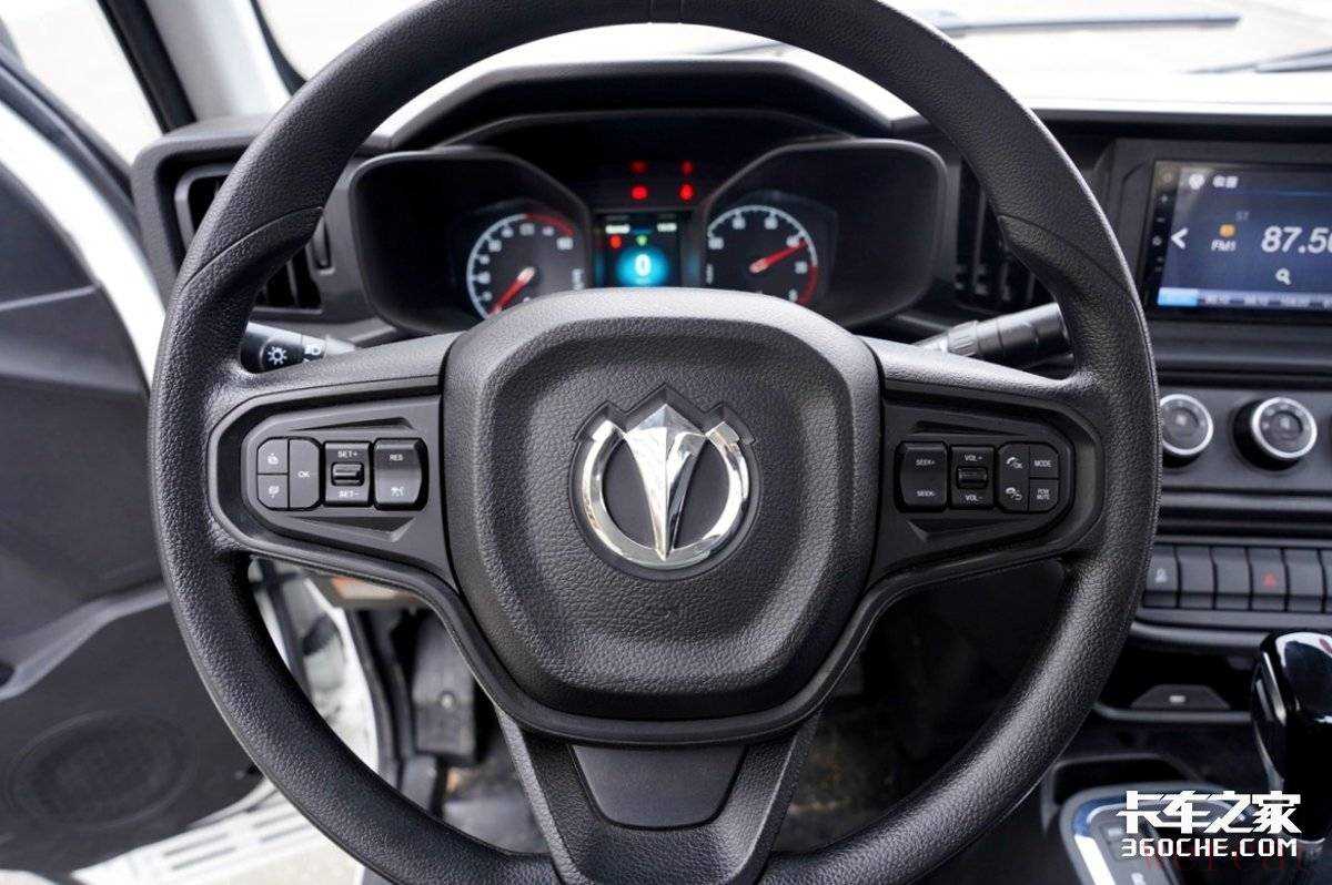 飞碟缔途EF3的驾驶室采用了乘用化的设计理念,其很多设计让人使用起来非常顺手,其方向盘角度区别于传统轻卡车型“端着”的姿态,而是更为接近家用轿车的角度。并且该方向盘还带有EPS电动助力转向和自动回正的功能,这些特点保障了其长时间驾车不易疲惫。