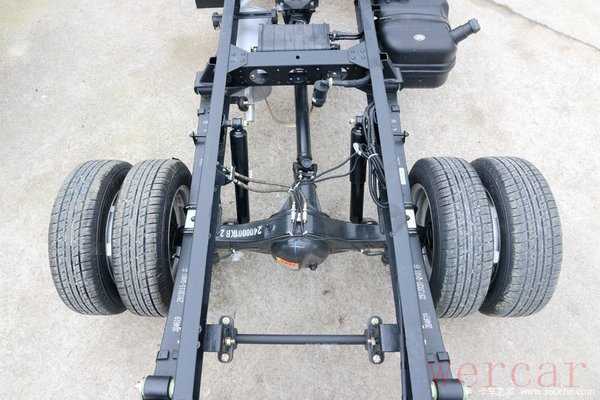 缔途GX用的是二类底盘,拥有两根粗壮的纵梁,该车后桥采用3吨级车桥,标配前后桥横向稳定杆,对于提升车辆满载下的稳定性有较大帮助。