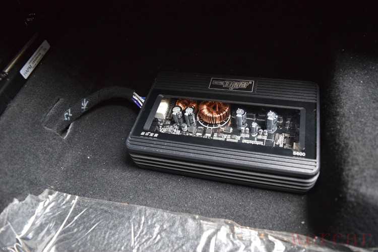 在座位下方安装西玛DSP功放,他内置四路功放输出,推前后声场两套喇叭,效果非常不错。