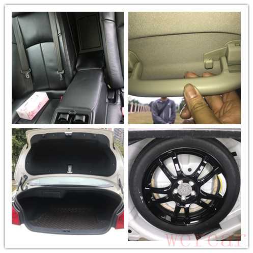 后排座椅磨损正常,安全带生产日期和安全带卡扣均无异常。四个顶棚拉把手无拆卸,尾箱无拆卸,尾箱上下饰板无拆卸,备胎槽无钣金修复痕迹。内饰总体不错。