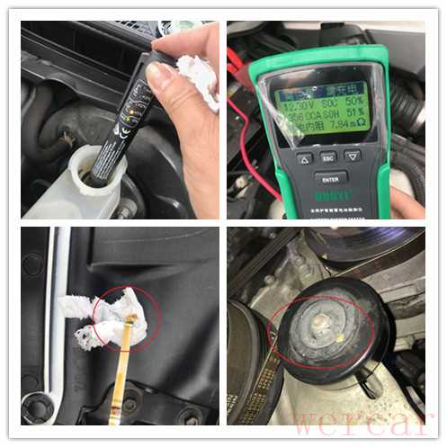 接下来对全车油液进行了一番检测,刹车油无需更换。由于车辆不经常使用,导致电瓶有些亏电,可以先使用观察。机油虽然看起来蛮干净的,但是车辆可能停的时间较久,建议后期立即更换。发电机皮带已更换,冷却液现已低于下限值,无法测量,后期需及时更换或者添加。