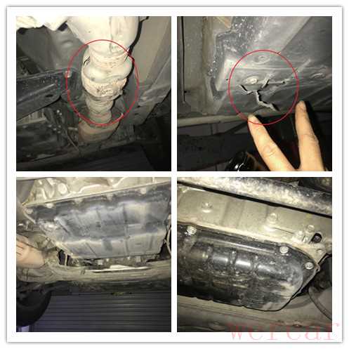 算了,猫着检测,有总比没有的强。把车升上去后客户跟我说:“上次那G25底盘托底比较严重,发动机和变速箱油底壳都有凹陷,前桥都刮掉了一大块,等会你好好看看这个有没有托底。”其实不用客户提醒,我也知道需要好好检查。不过客户的用意我还是能够理解的,毕竟从前面的检测情况来看这辆车的表现还算不错。