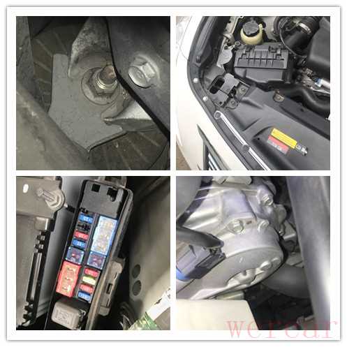发动机机脚螺丝、水箱框架螺丝均无拆卸痕迹,保险盒内部无泥沙生锈及拆卸痕迹。左右气门室盖垫无漏油和拆卸痕迹。