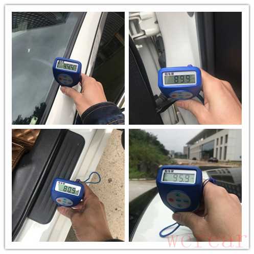 接着拿出专业仪器检测,发现左前叶子板钣金喷漆修复、左前门钣金喷漆修复、左后门钣金喷漆修复、左后叶子板钣金喷漆修复、右后叶子板钣金喷漆修复......钣金喷漆的地方很多,虽然四门都有钣金喷漆修复,但是四门固定螺丝无拆卸痕迹。