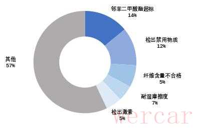 邻苯二甲酸酯超标、检出禁用物质、耐湿摩擦度不合格