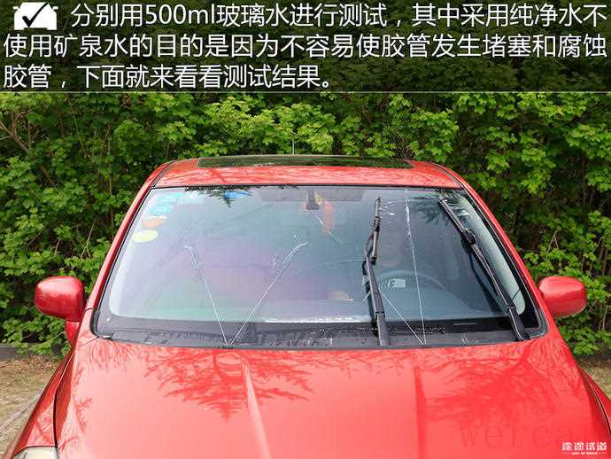 "危害:" 清水清洁力差,导致玻璃污秽不清,雨刮器刮不干净,严重影响视线。
