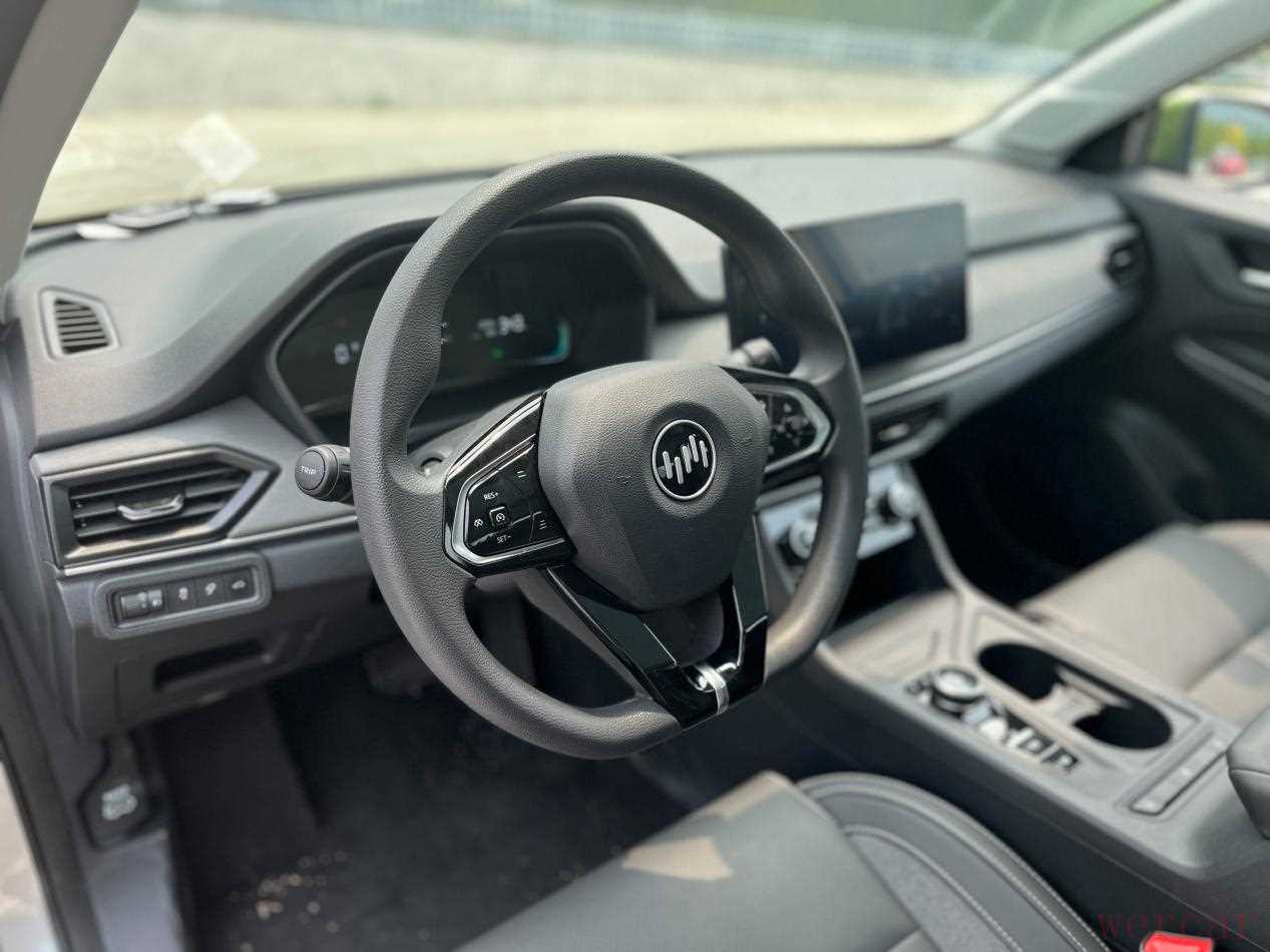 说实话,车内看起来挺普通的,也可能是被现在市面上那些新能源车型看花眼了,没有摆在面前甚至比电脑还大的屏幕,没有各种折线叠起来那种酷炫吊炸天的造型。一度让我怀疑,今天开的是油车还是电车?但也许就是因为这样才会更实用,我坐进这台车里一点都不陌生,横平竖直的中控台布局,到什么时候都很耐看,上车之后很自然的就知道把手里的东西往储物格塞;扭几下旋钮就能将空调调至合适的温度;往后划几下、点几下,屏幕里就会出想要的东西。这种感觉就好像这台车已经陪我很多年了一样,特自然。屏幕的功能还行,有高德地图、有腾讯视频,能用蓝牙连手机,用起来还是很方便的。