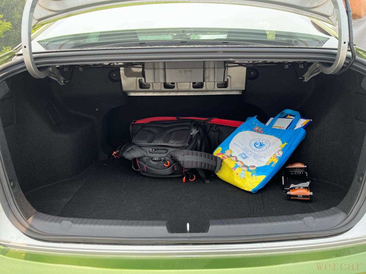 后备厢开口还是挺大的,进深也非常可观,整体装载能力非常让人满意。不过也有两点美中不足的地方,一个是它后备厢盖支臂的结构太占地了,倒不是说它有多大,而是这个支臂在关上之后,使得后备厢里边的东西容易被挤压。还有就是它的开启方式,要么用钥匙、要么从车里开,外边没有开关,着实有些不太方便。