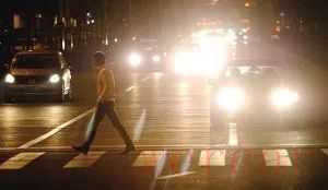 当遇到对向车辆远光灯照射的时候,一定要先学会减速,这样能留足反应时间,尽可能避免事故的发生。