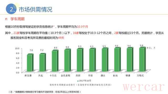 根据10月份取得驾驶证的学员学车周期平均为10个月。其中,有学员从报名到全科目考完所花费的最短时间仅49天。