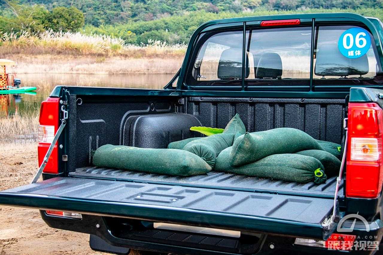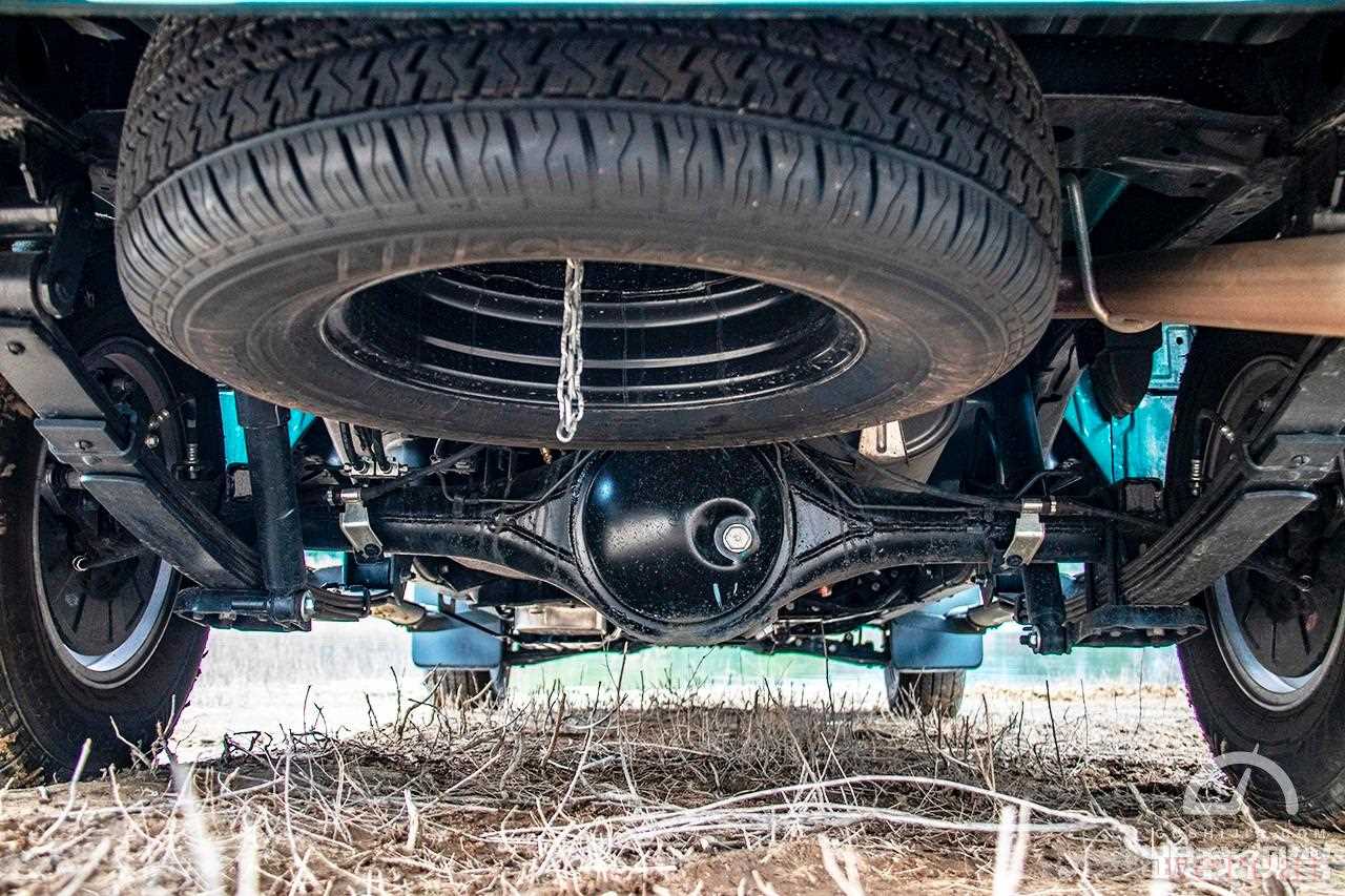 车尾方面,新锐骐的尾部也是以简洁和实用为主,并且还有货箱踏板的布局。此外新锐骐还配有全尺寸的备胎,位于货箱下方,不占用货箱空间,提高货箱的使用效率。灯组方面,都是卤素光源为主。