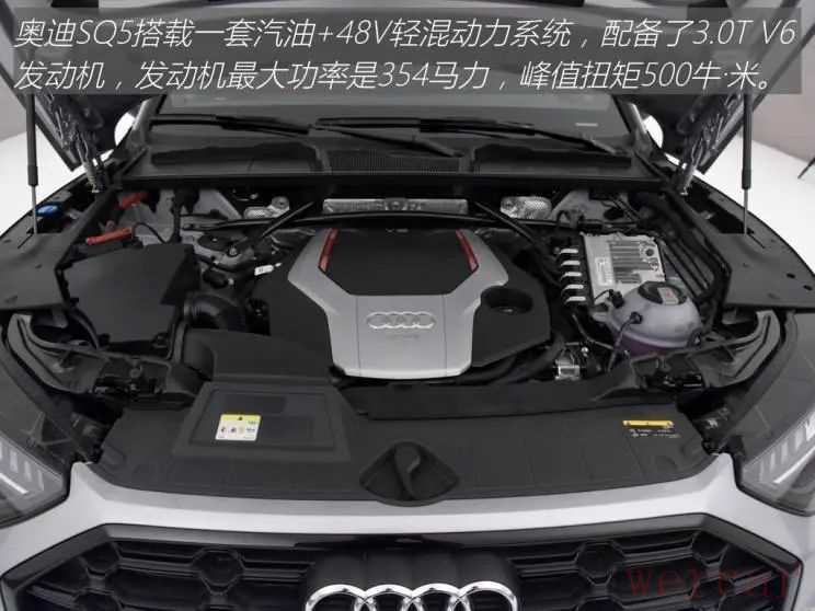 奥迪SQ5搭载3.0T V6发动机,拥有354马力的强大动力,配备8速自动变速箱,油门猛踩,剩下的就交给“夸戳”(自动变速箱)来处理,带来畅快的驾驶体验。