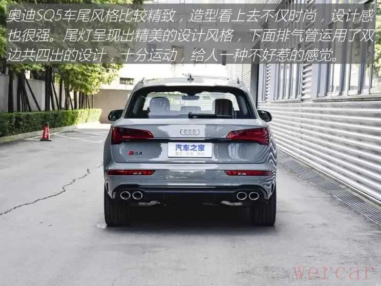 看完上面的实拍体验,你心中是不是还有很多的疑问呢?别着急,下面且听我给你总结一番。奥迪(进口)-奥迪SQ5官方0-100km/h加速时间是5.3s,动力随叫随到,驾驶乐趣倍增。这款车配备可开启全景天窗,通透的全景大天窗视觉效果非常出色,高采光率能够让车内显得明亮。车侧呈现出时尚动感的设计风格,整体轮廓设计比较符合年轻消费者的审美。如果你喜欢这款车,那么不妨亲自去看看实车。