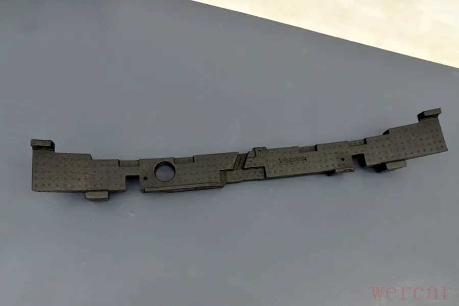 拆掉前保险杠,内部有一根铝合金材质的前防撞梁,厚度为3.30毫米,宽度能覆盖车头的75.00%,这在比亚迪车型当中可不多见,一般比亚迪车都是钢板防撞梁。